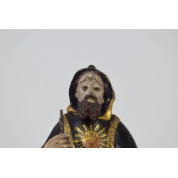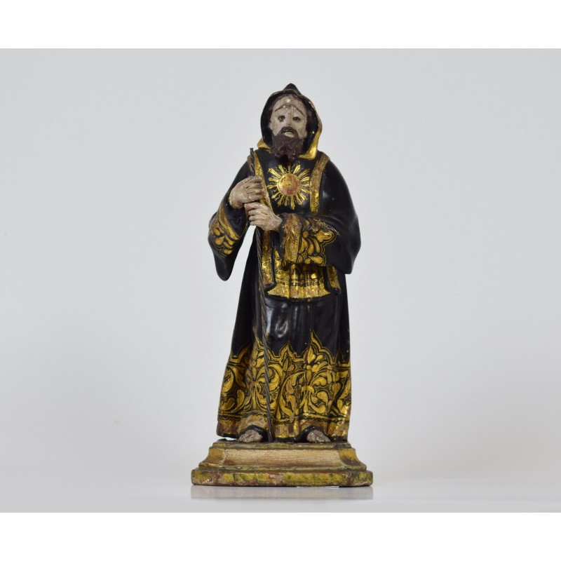 Imagem de São Francisco de Paula em madeira policromada. Portugal. século XVIII-XIX. Altura: 26 cm.