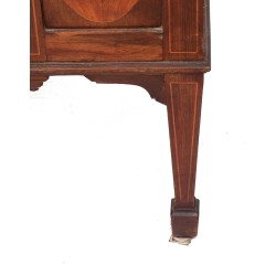 LEANDRO MARTINS - Vitrine em mogno marchetado de fabricação da tradicional casa Leandro Martins. Possuem 3 prateleiras,fundo forrado em tecido marfim, porta e vidros frontais em cristal bisotado. Medidas: 112 cm x 52 cm. Altura: 183 cm.